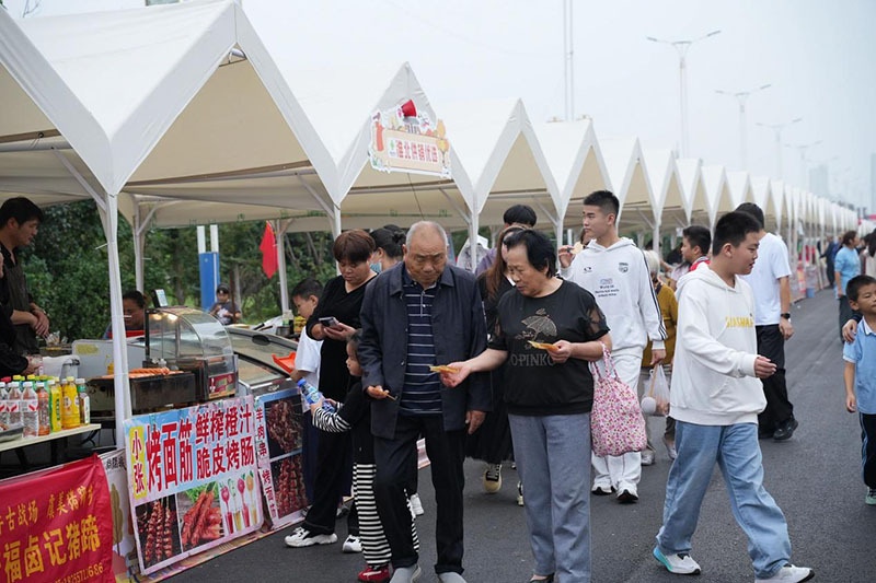 傍晚时分,露营地的烧烤区渐渐热闹起来,袅袅炊烟升起,烤肉的香气随风飘散。不少家庭、朋友围坐在烧烤炉旁,一边烤制美食,一边聊天说笑,暖黄的灯光下,氛围感十足。“特意和朋友提前预约了烧烤位,白天逛市集、看表演,晚上烤着肉、聊着天,这才是国庆假期该有的样子!” 游客张伟说。